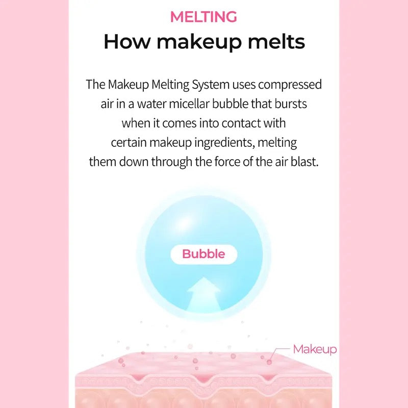 ·Innovative formula doubles as a daily foam cleanser and a "melting" bubble cleanser for sunscreen and light base makeup ·When used as a daily foam cleanser on makeup-free skin, the soft, dense bubbles effectively grab onto and remove impurities from deep within your pores·When removing sunscreen and light base makeup, the unique formula will react and start "bubbling" to effectively melt everything away ·The "Makeup Melting System" uses compressed air in micellar bubbles that burst when coming into contact with certain makeup ingredients ·Effective alternative to the abrasiveness and comedogenic nature of oil cleansers that can leave skin feeling heavy and prone to breakouts·Formulated with Calamine and Niacinamide to soothe any skin irritation ·Safe for removing eye and lip makeup, and safe for sensitive skin How to use: ·Pump a sufficient amount onto dry hands and begin to lather. Apply in circular motions onto a dry face·When applying onto skin with sunscreen or makeup, the cleanser will begin to bubble. Continue applying the cleanser in circular motions until all of your makeup has been removed. It is safe for removing eye and lip makeup as well·Rinse with warm water. Use the cleanser twice for removing heavy or stubborn makeup. Always make sure to apply on dry skin, otherwise the melting formula will not activate